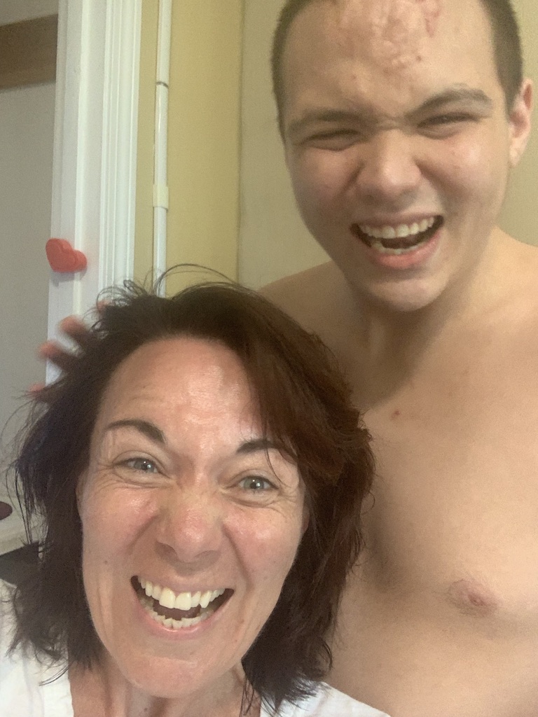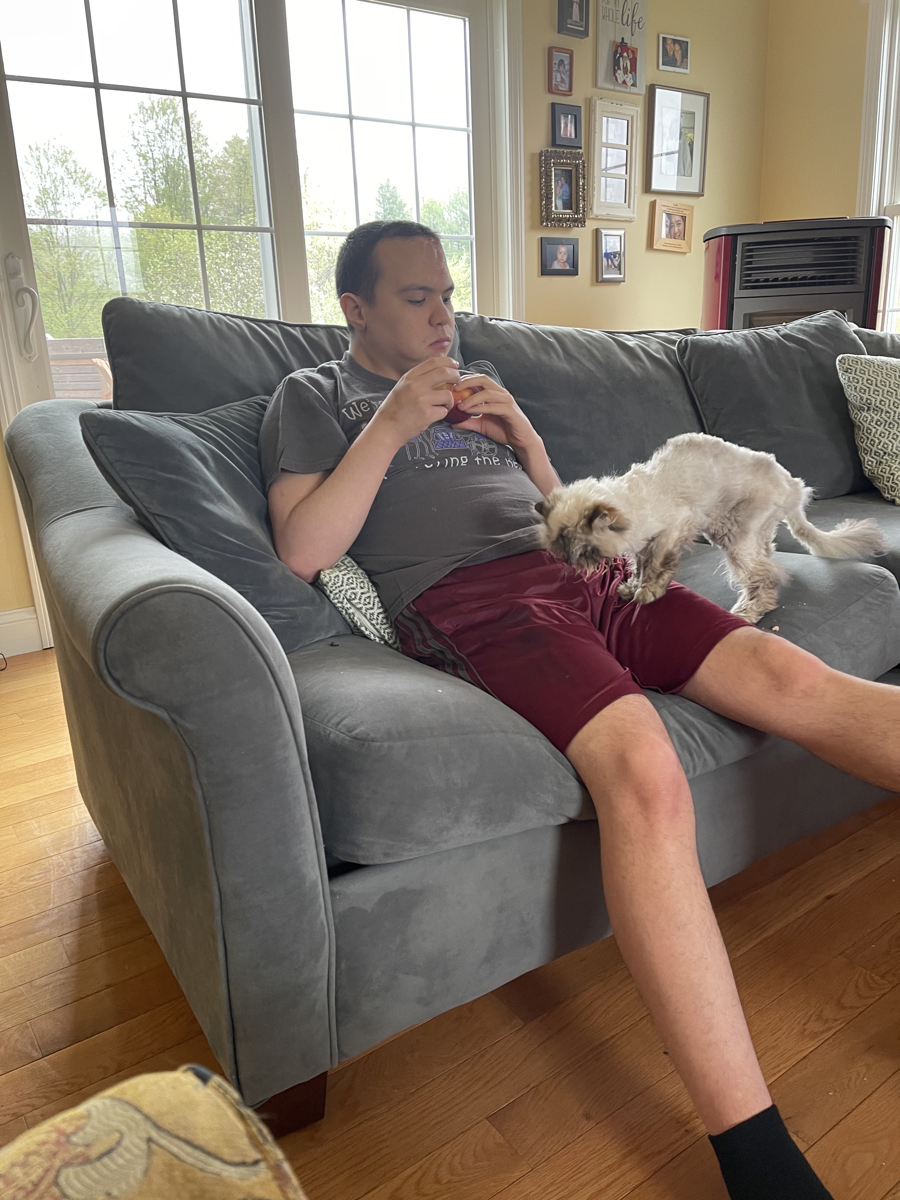 Relaxin on YouTube with a brownie. Life is good.Swimming is a must, pool toys optionalDad, Mom & sister advocating for Nicky’s Law at the Boston State HouseEverybody in Disney costumes for HalloweenHugs from DadFun with Mom (always means doing Disney lines)Baking with Mom is a regular gigRed is his signature colorSummertime ice cream YUMHockey helmets are part of Nicky’s vibeA dream come true for Mom!Happy Nicky & his best friendNicky and staff swapping headgearNicky and staff News interview for Nicky’s Law/Dana’s Law, 2019Nicky and a favorite stafferMom Cheryl is a public speaker on person-centered workNicky loves to “mug” the mirror and camerasNicky baking with MomNicky and his Papa 2024Nicky picking out his favorite snacksDispensing free popcorn at his local storeMorning exercisesShopping for new clothes. He’s very particular.Mother’s Day 2021. We had a great visit!Not a happy guy when Cleo the cat (don’t judge, she’s old and has dementia!) jumped into his lap. Nicky is not a fan of animals of any kind. He ignores them when they’re around, but in this case he just stared at her and after a few seconds looked at me, pointed at her, and said “HELP!” June 2021June 2021 – the day Nicky got chased down the hall by his “little” sister. The anticipation of getting tickled!